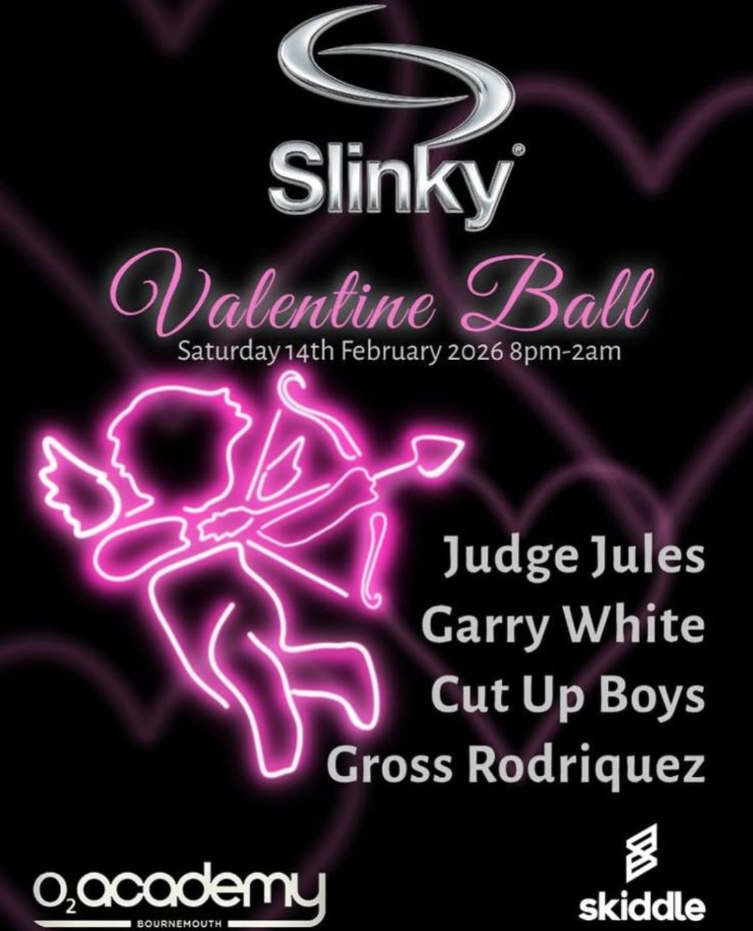 To register for this event please visit the following URL: https://www.skiddle.com/whats-on/Bournemouth/O2-Academy-Bournemouth/Slinky-Valentine-Ball/41606874/?fbclid=IwY2xjawOylnVleHRuA2FlbQIxMABicmlkETFhUEM1QXg5djBQTVkzcW9jc3J0YwZhcHBfaWQQMjIyMDM5MTc4ODIwMDg5MgABHnYIkAKDDUuaWi3hdJG86HiBczwyvfo__Bex63AOrDfHXc3ITWVZP8inUGFq_aem_Os6bE64d2k6-3fMG8DG_yA →